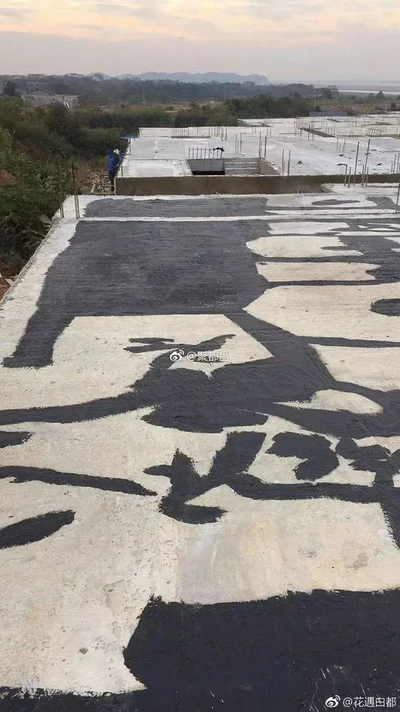 后来随着质量问题越来越多!越来越严重!在全村老百姓一再抗议的情况下,项目承包商为了息事宁人,为了遮掩事实,安排工人直接在上面涂了一层柏油,直接用柏油做楼顶补漏处理,而非专业的楼板缝灌浆捣筑做防水处理,各位领导可以从文章后附的图片和视频中看到,补漏柏油敷衍潦草,根本起不了任何作用,加上楼顶坑凹不平,一下雨屋内就漏水,更可恶的是,屋内倒地面沙多水泥少,村民用啤酒瓶能打一个窟窿,9 月底粉刷的墙面,不到1 个月,墙体就已经出现裂缝,部分已经出现掉落。